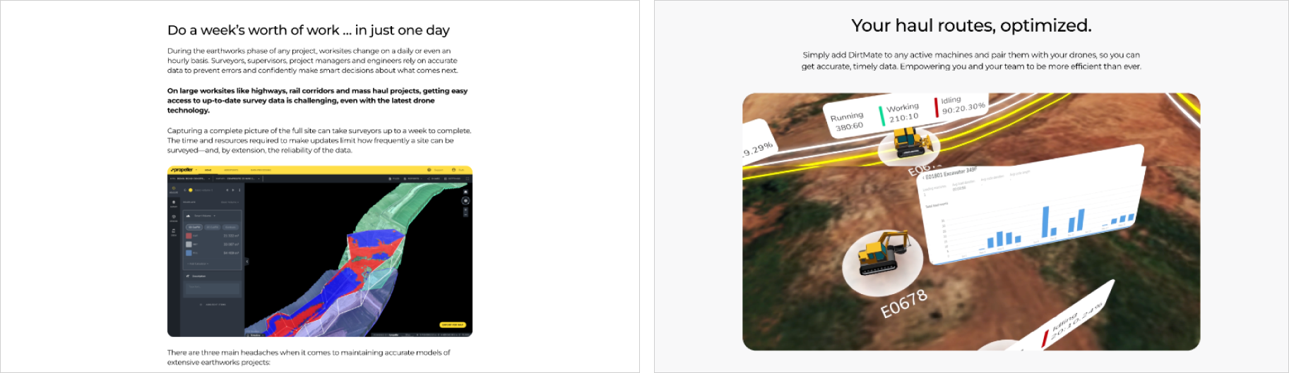 The Propeller Platform visualises worksite progress in a survey data and BIM software ecosystem. As Product Design Team Lead, I used customer insights to guide the design process, supported by a strong partnership between product designers and engineers.