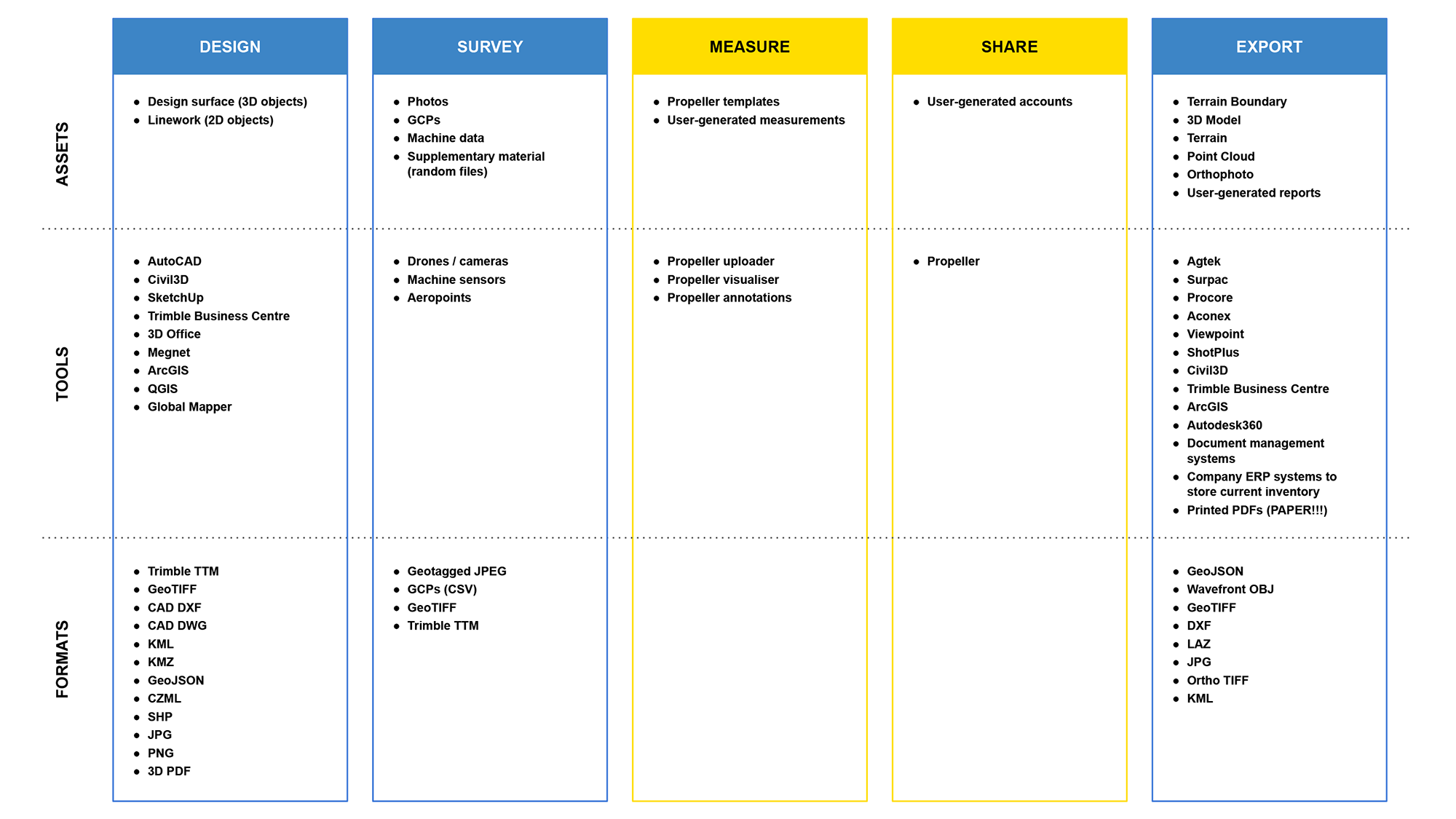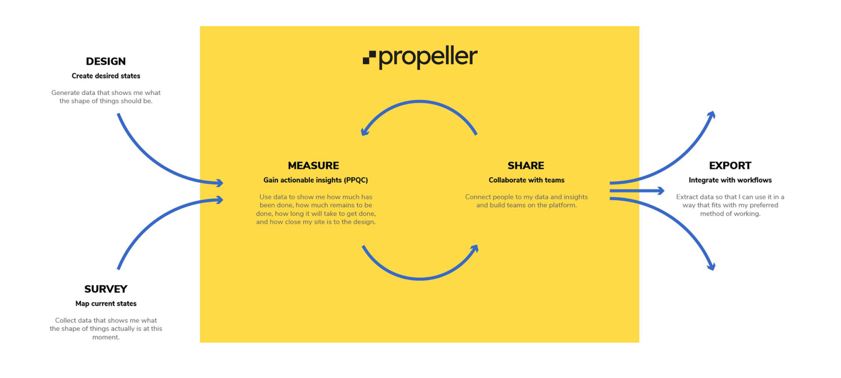 The Propeller Platform visualises worksite progress in a survey data and BIM software ecosystem. As Product Design Team Lead, I used customer insights to guide the design process, supported by a strong partnership between product designers and engineers.
