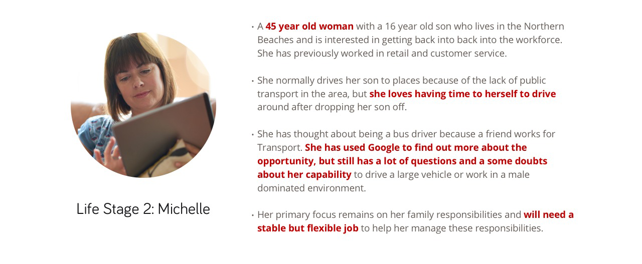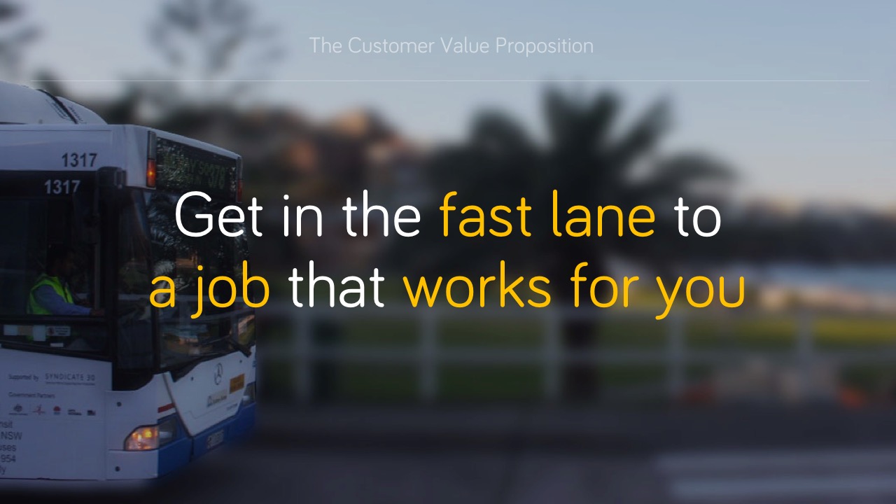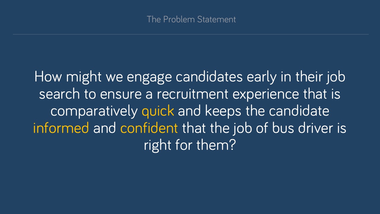 Drive with State Transit had its inception in an innovation incubator run in partnership between Symplicit and Transport for NSW. My role in the incubator program was to lead a team of TfNSW stakeholders through a 2 week cycle of research and design activities aimed at solving a specific problem with recruitment of bus drivers for Sydney's Northern beaches region: