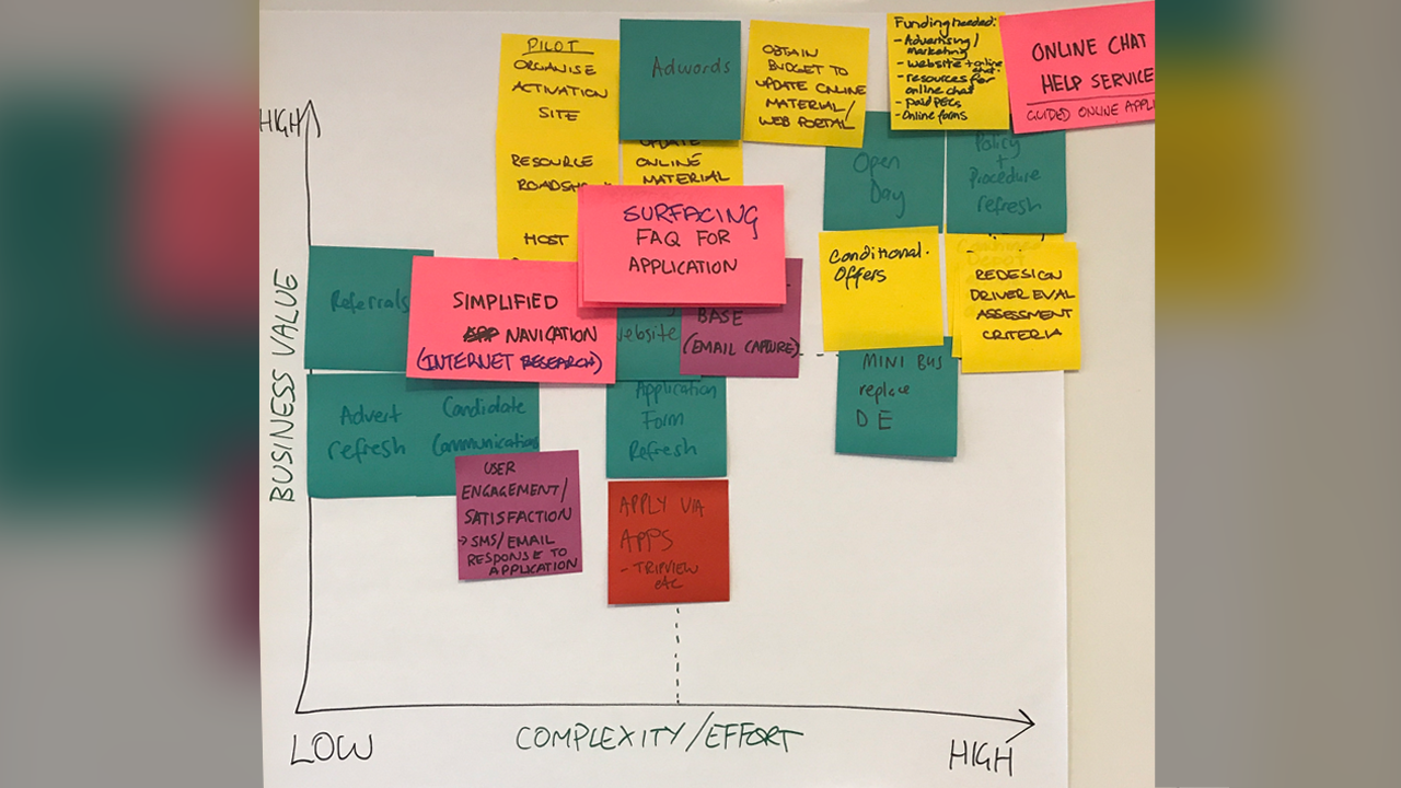 Rapid ideation early in the second week resulted in an initial roadmap of solutions which aimed to expedite the application process through early and constant engagement with applicants and candidates: