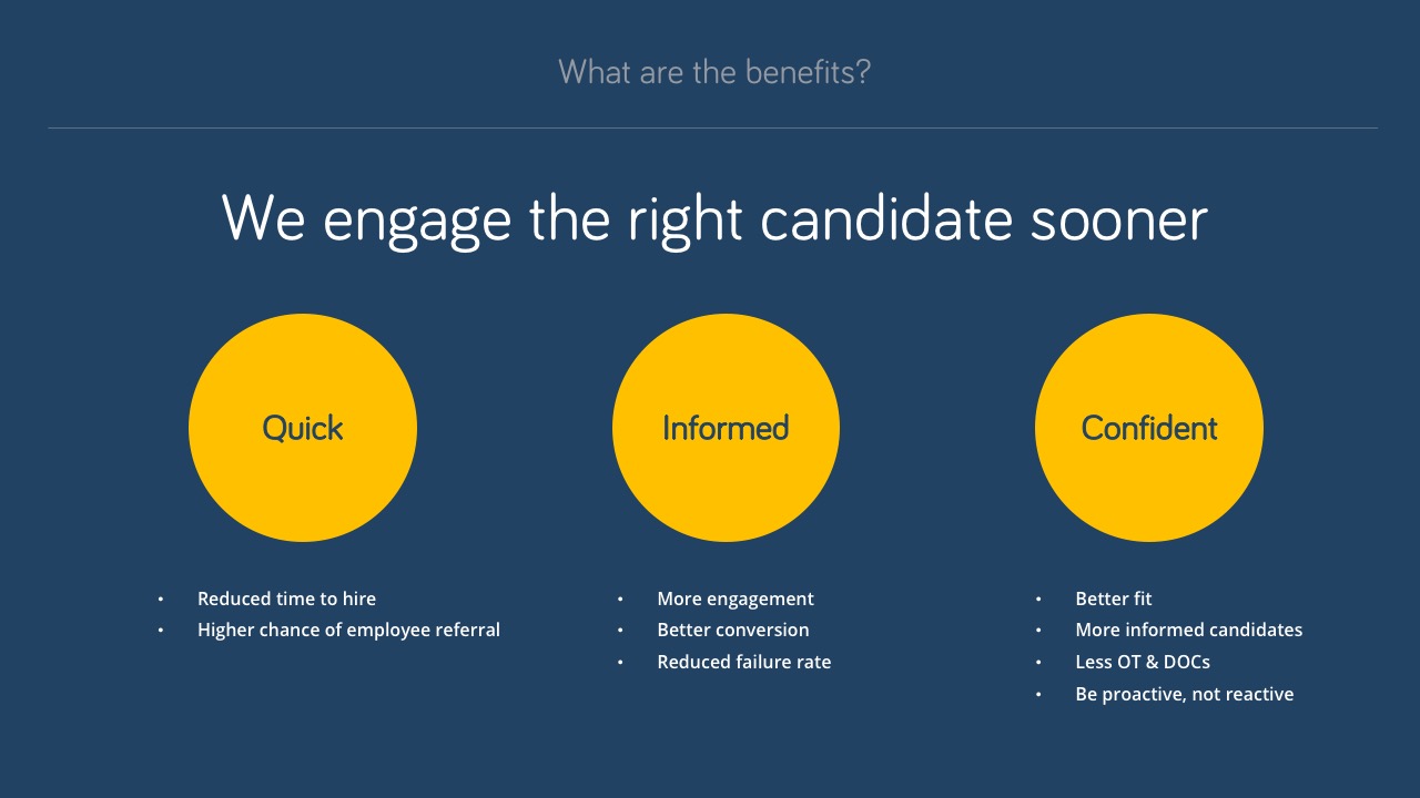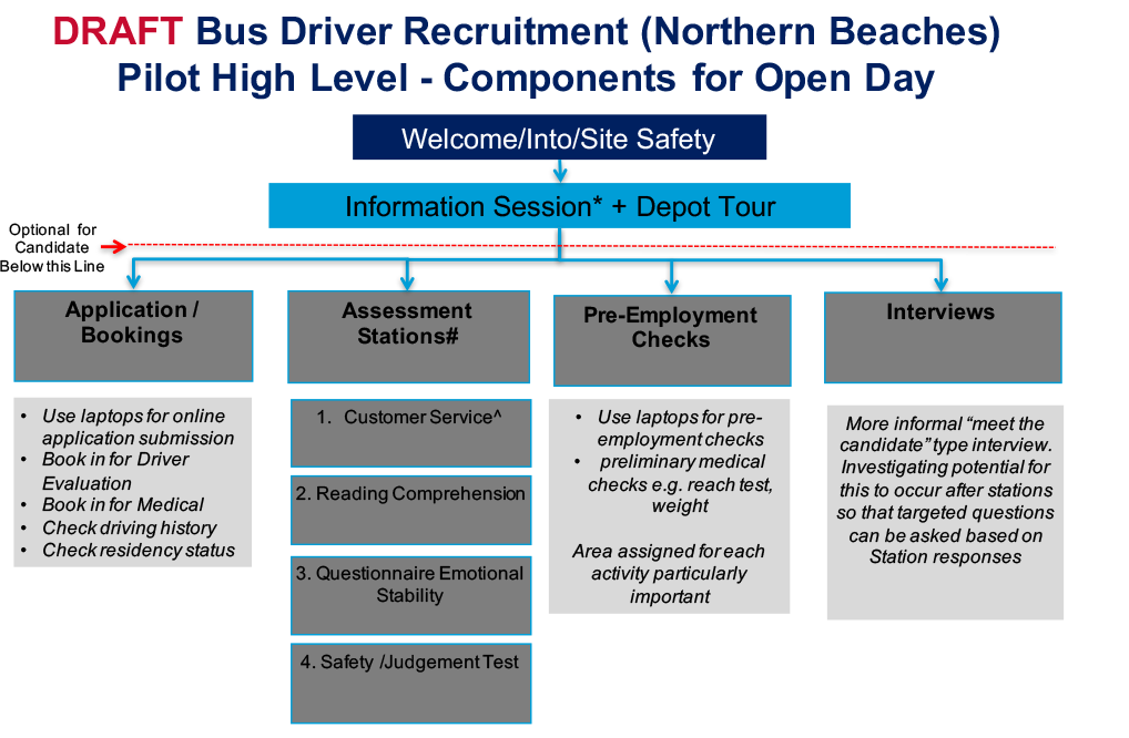A value proposition and a concept were developed for testing which aimed to engage candidates through new online channels by registering for an in-depot experience which would include a simulated driving experience for early driver assessment and an initial job offers on the day:
