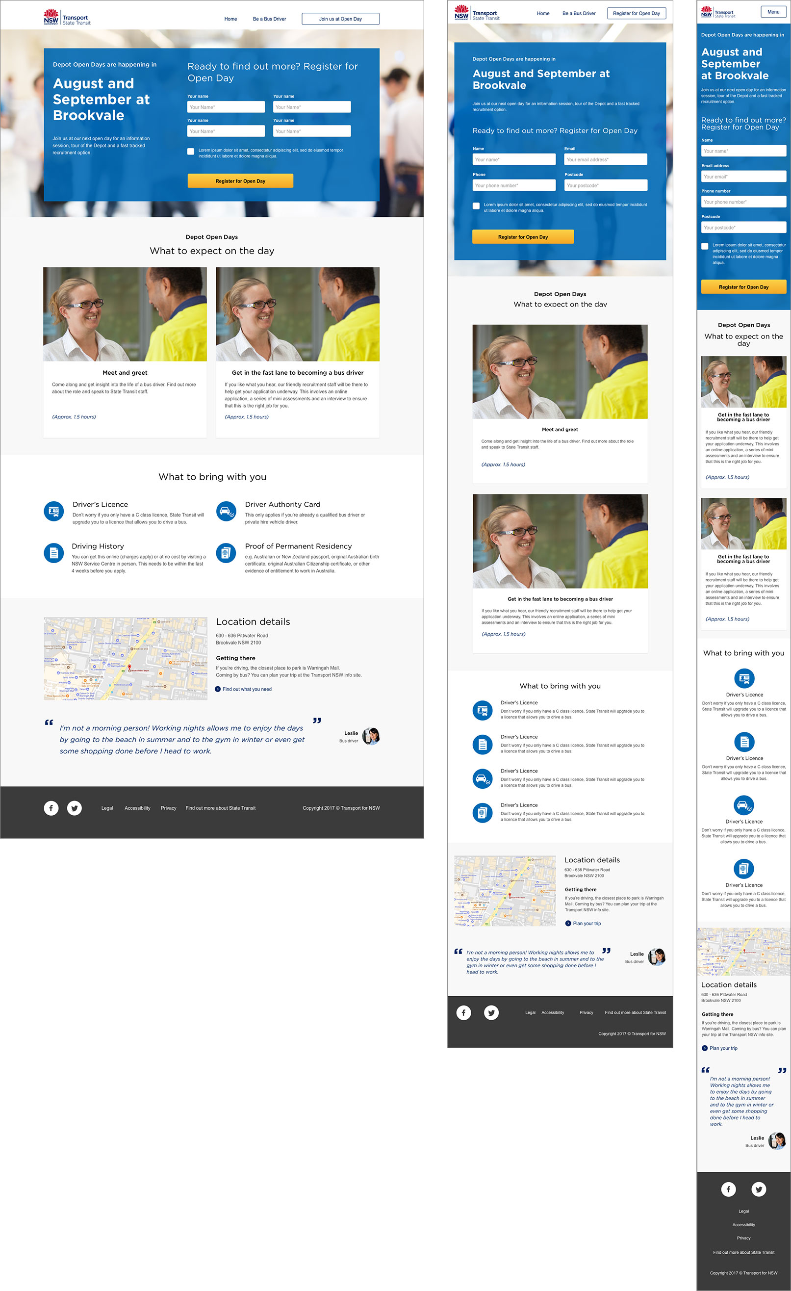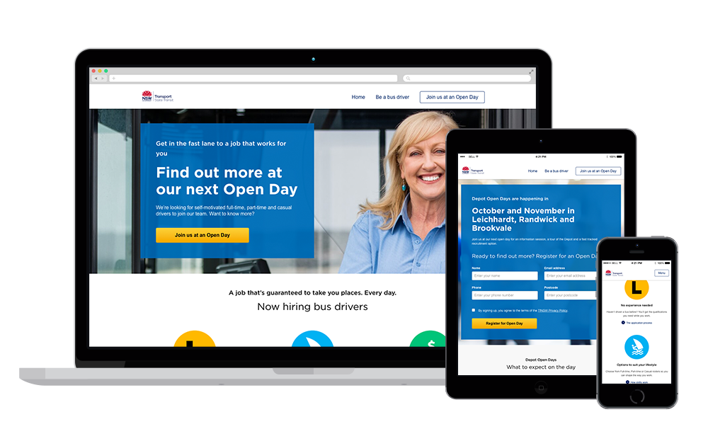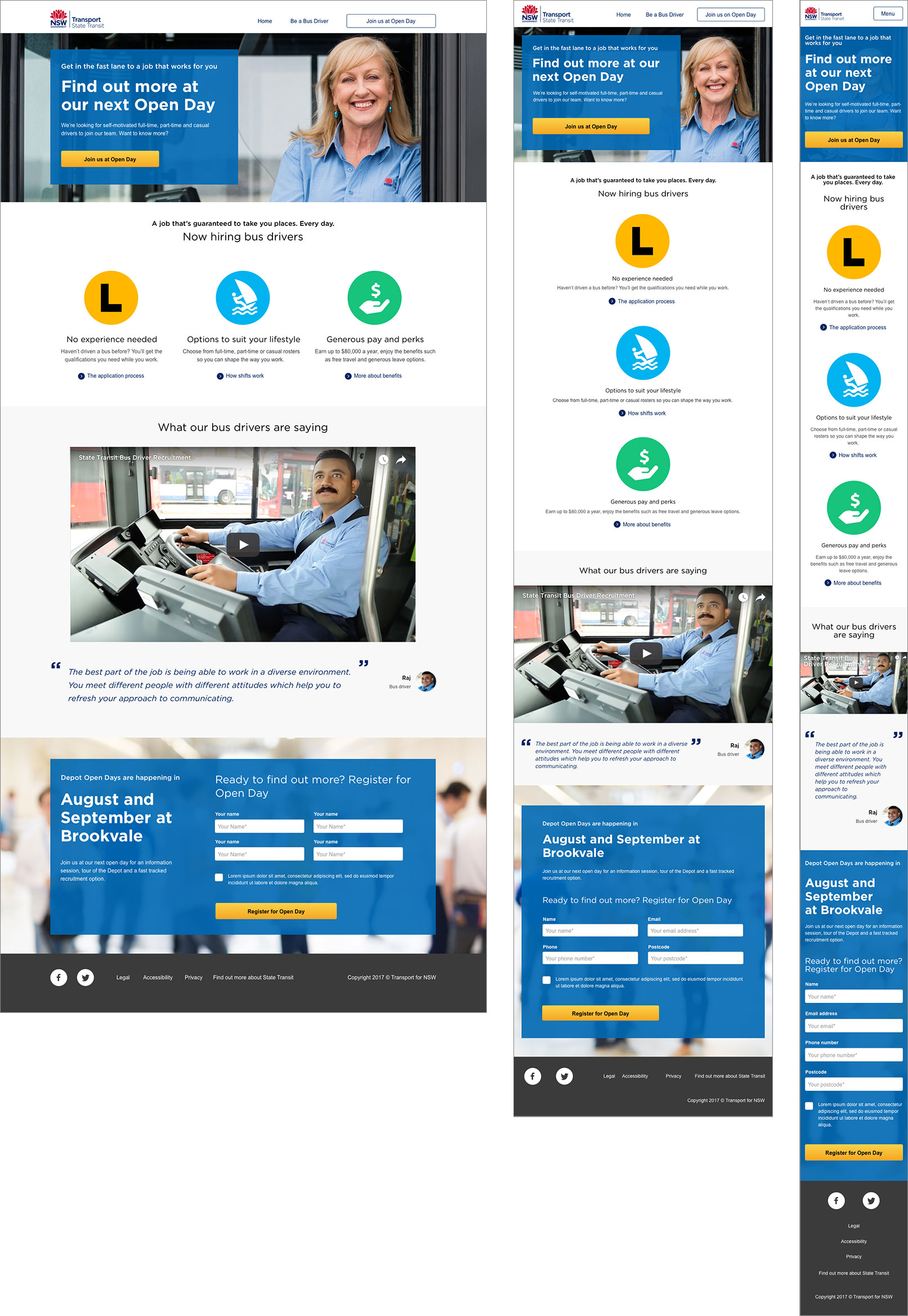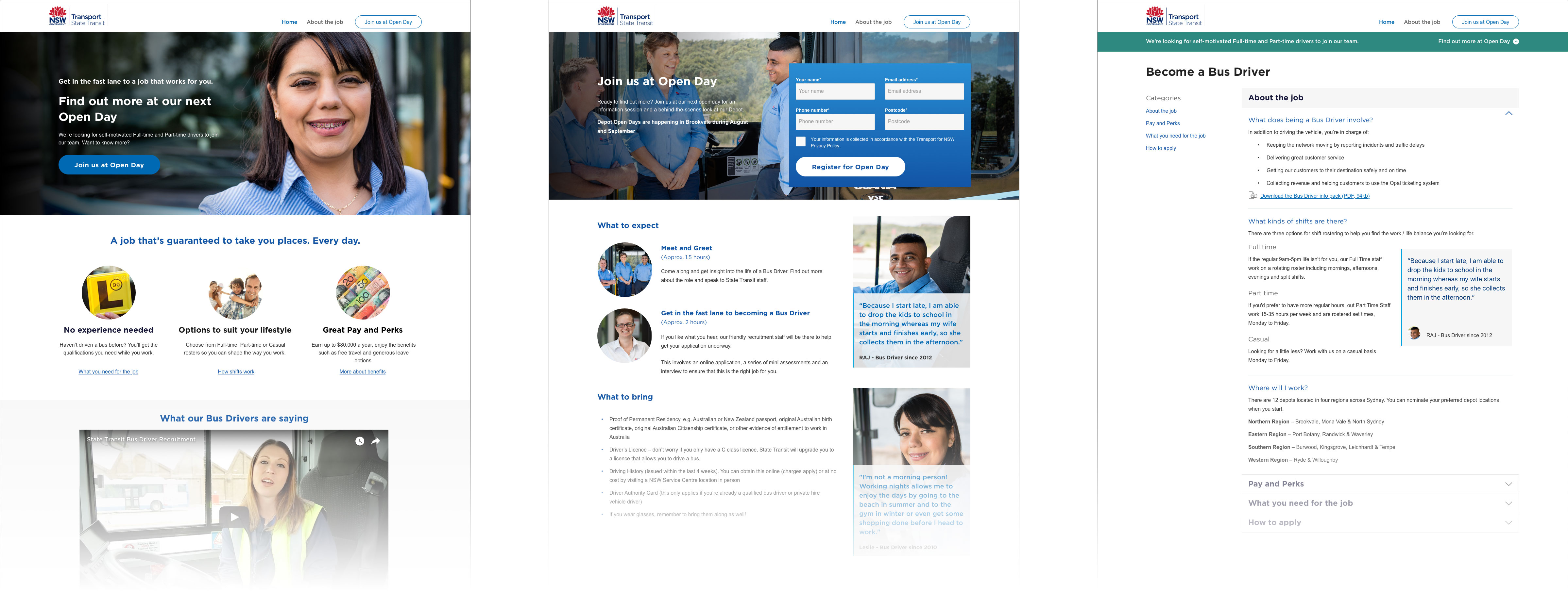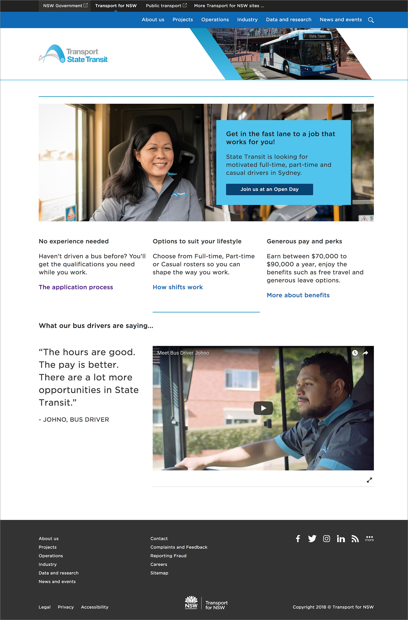 Drive With State Transit has now been integrated with the State Transit website, maintaining the original value proposition, IA and features. The site continues to perform well for State Transit, helping recruitment teams get the right people behind the driving wheel faster.